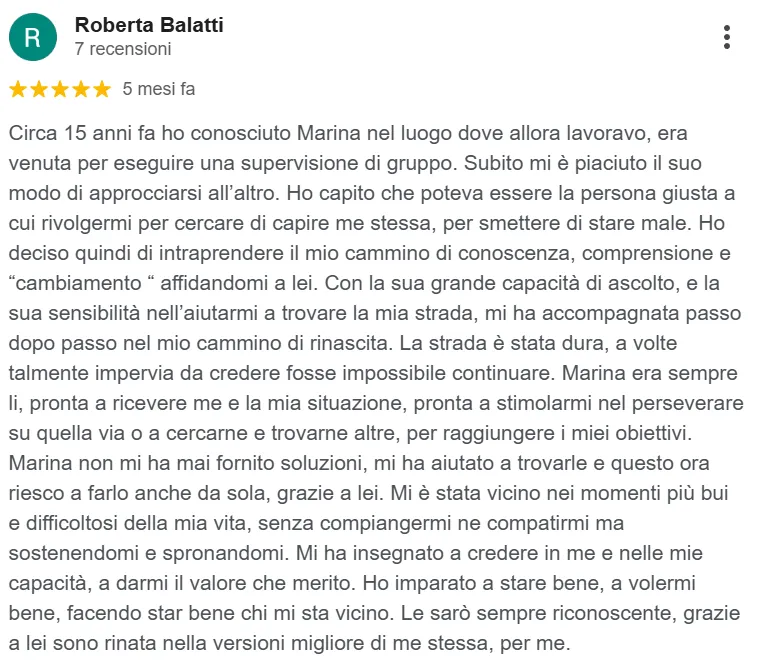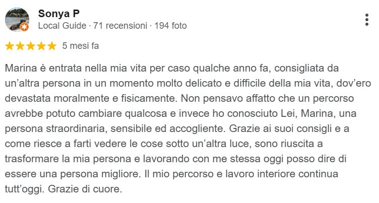 Marina è counselor ad indirizzo psicocorporeo, consulente psicosociale e mediatrice familiare, con oltre 25 anni di esperienza nell’ascolto e nell’accompagnamento delle persone verso un maggiore equilibrio tra mente, corpo ed emozioni.